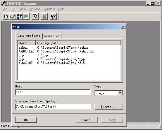 2、 点击FILE \ NEW,按照图例输入文件名称(TEST)和文件夹地址,然后点击OK;
