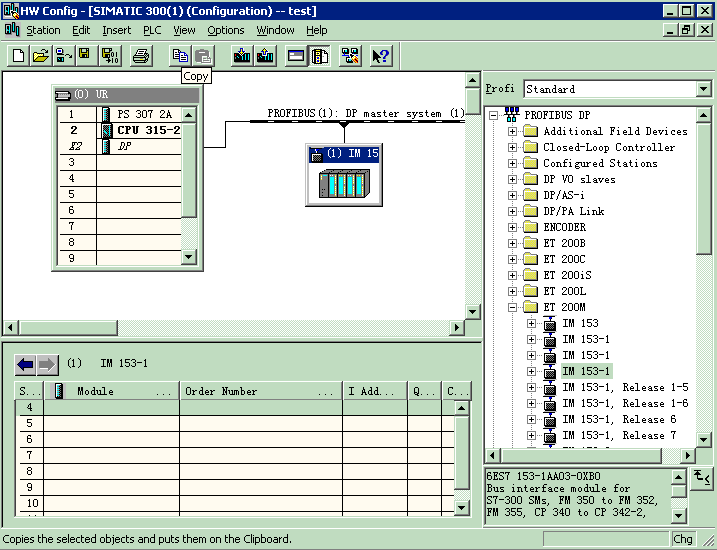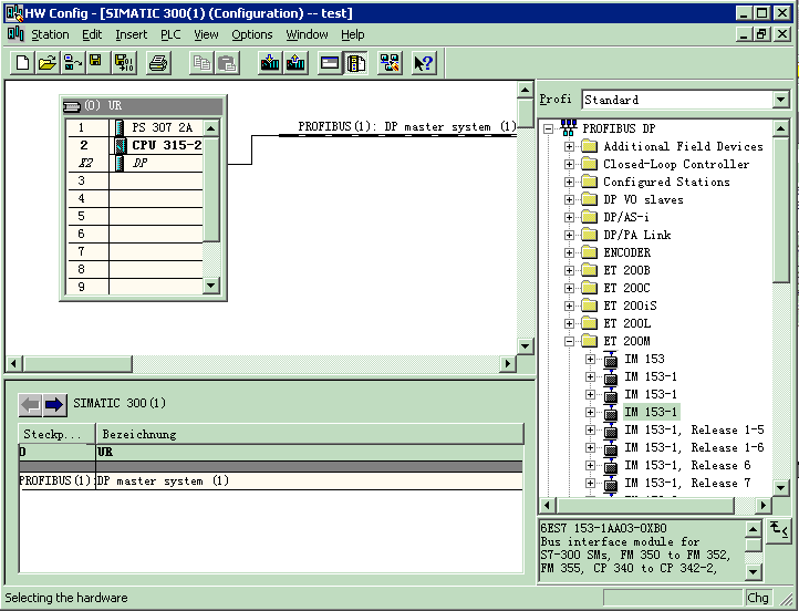 10、组态ET200M,点开PROFIBUS DP\点开ET200M\选中IM153-1(注意,是6ES7 153-1AA03-0XB0);将
