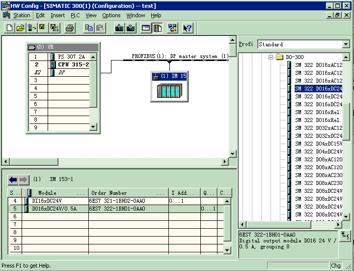 13 按照上面步骤组态DO模块(6ES7 322-1BH010AA0)。系统也将为其分配地址为(Q0.0~Q1.7)。