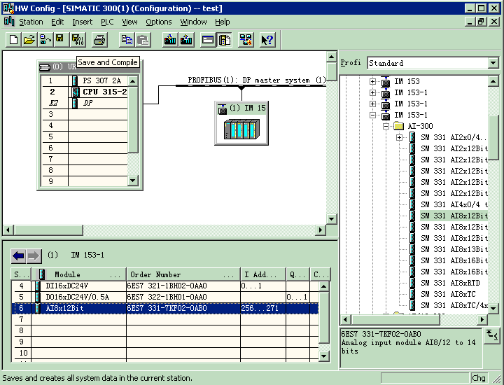 ,Save and Complice,存盘并编译硬件组态,完成硬件组态工作。
