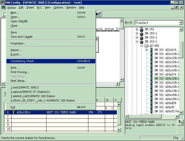 16、检查组态,点击STATION \Consistency check ,如果弹出NO error 窗口,则表示没有错误产生!